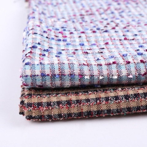 Chane-Style Fabric170gsm Polyester Cotton Yarn Dyed Single Jacquard Knitted Tweed Fabric for Women Coat Garment